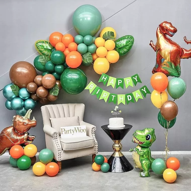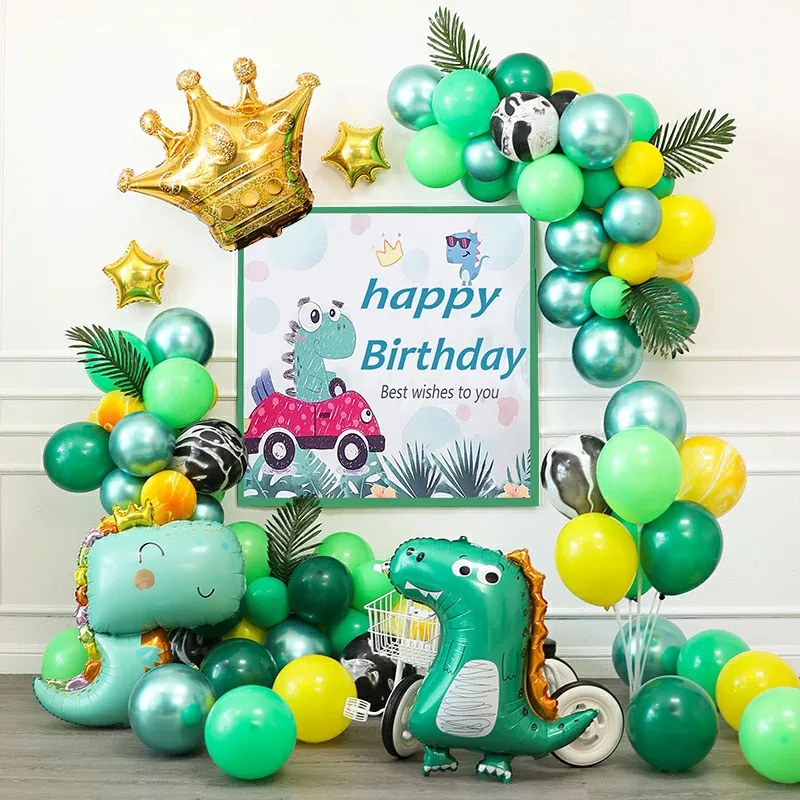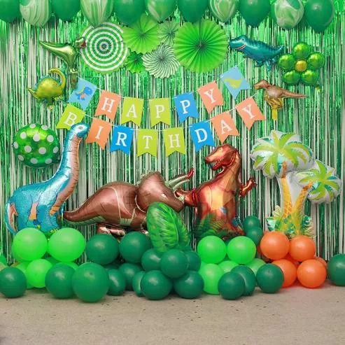 تعد مجموعات الديناصورات بالون (بما في ذلك البالونات والمضخات وما إلى ذلك) محور الحزب ، مع موضوع واضح وآمن ومريح ومنخفض التكلفة. تتضمن المجموعة عادةً بالونات عالية الجودة من اللاتكس أو رقائق الألومنيوم المطبوعة مع أنماط الديناصورات المختلفة ، والمضخات اليدوية أو الكهربائية ، وحاملي البالون أو قواعد للتثبيت ، والشرائط لسهولة التسكع. تلبي مادة البالون معايير السلامة ، ولها ألوان غنية ، والأنماط المطبوعة واضحة وحيوية ، ويمكنها تحمل الاستخدام العادي أثناء الحفلة. المكونات الكاملة تعني أن المستخدمين لا يحتاجون إلى القلق بشأن إعداد الملحقات المتناثرة.