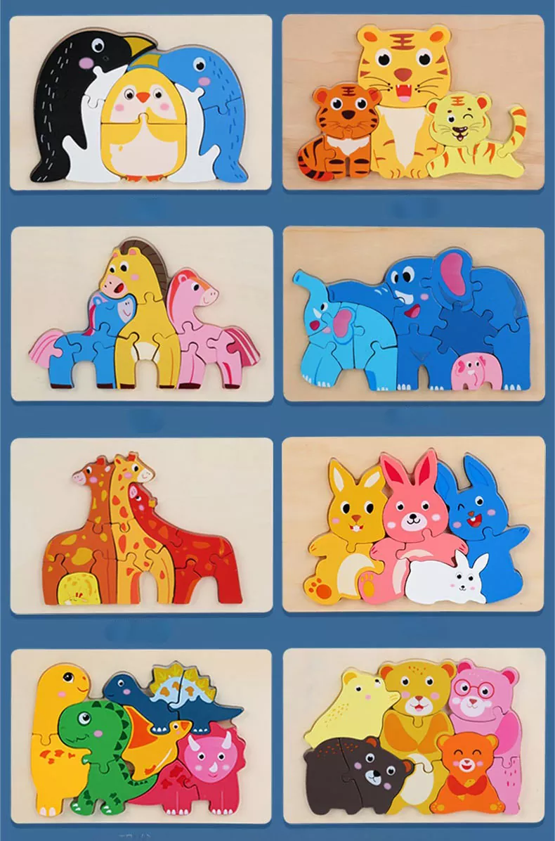 أحجية الصور المقطوعة على شكل حيوانات كرتونية خشبية تعليمية للأطفال
