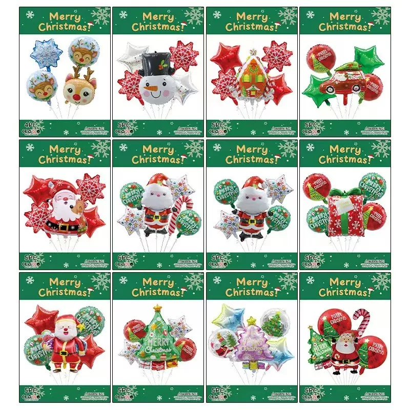 هناك العديد من أنماط بالونات الألومنيوم في مجموعة بالون عيد الميلاد ، وأنماط عيد الميلاد (مثل أشجار عيد الميلاد ، الأيائل ، رجال الثلج ، صناديق الهدايا) لها معنى ثلاثي الأبعاد قوي بعد التضخم ؛