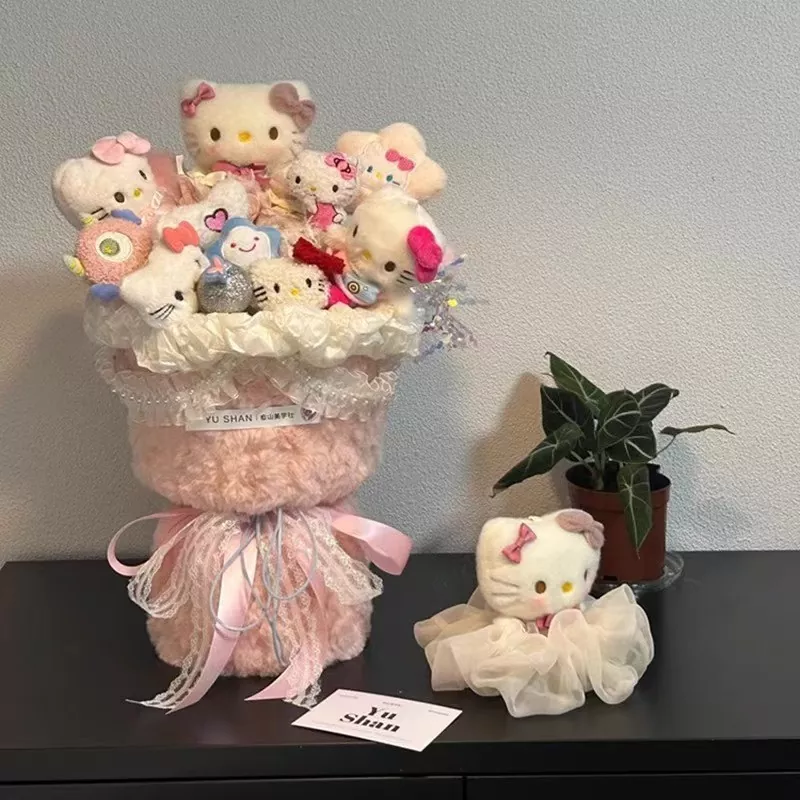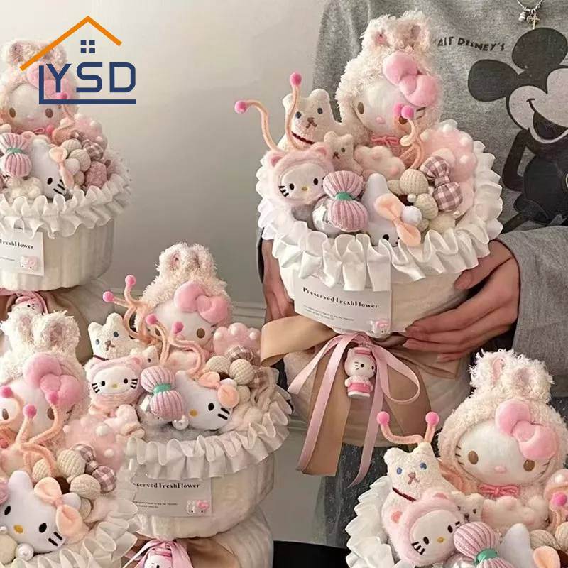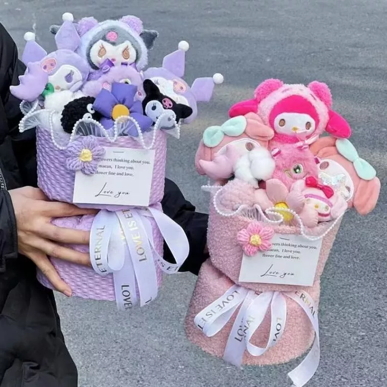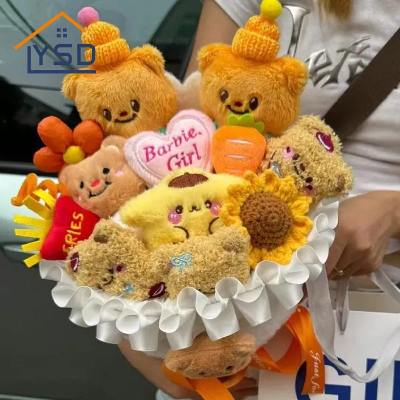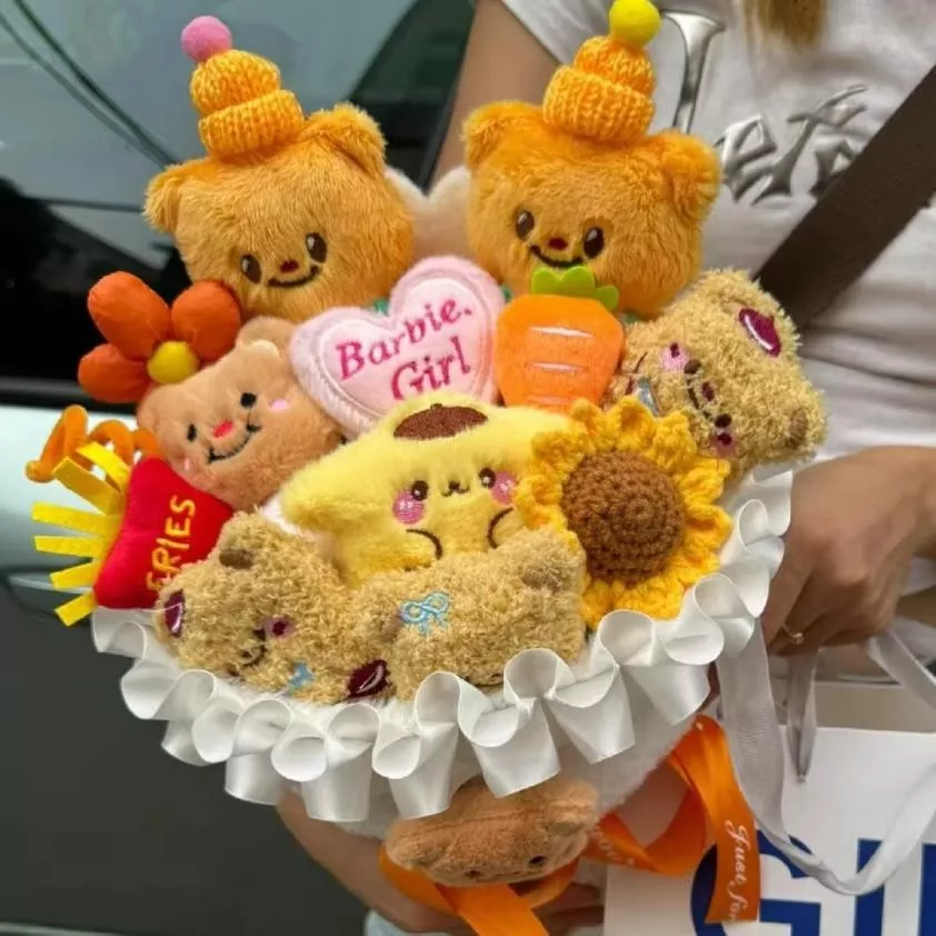 تجمع باقات الدمية بذكاء بين الدمى الفخمة المحببة مع باقات تقليدية. إنهم ليسوا زهورًا ، لكنهم ينقلون العواطف والفرح بطريقة أكثر إبداعًا ودائمة ، مما يخلق إضافة فريدة من نوعها إلى الحفلات ومناسبات تقديم الهدايا. تكمن قيمتها الأساسية في مزج الشعور المريح بالدمى مع الشعور الاحتفالي للباقات.