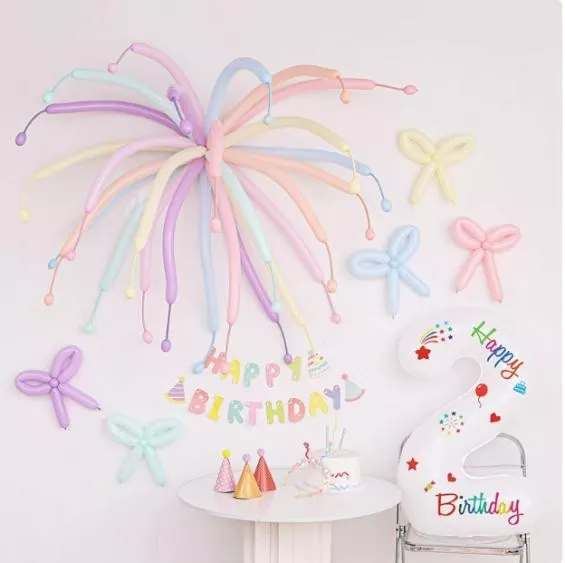 المزيج اللطيف من ألوان ماكا ، حتى تطور البالون البسيط يمكن أن يمثل جوًا حلوًا ، وهو مناسب جدًا لحفلات أعياد الميلاد أو زينة طاولة الحلوى! نغماتها الناعمة والأشكال المتغيرة باستمرار تضيف حلاوة ومتعة طفولية!