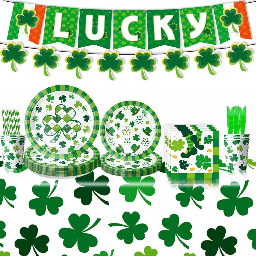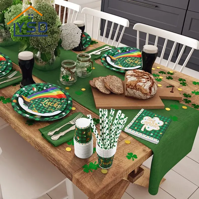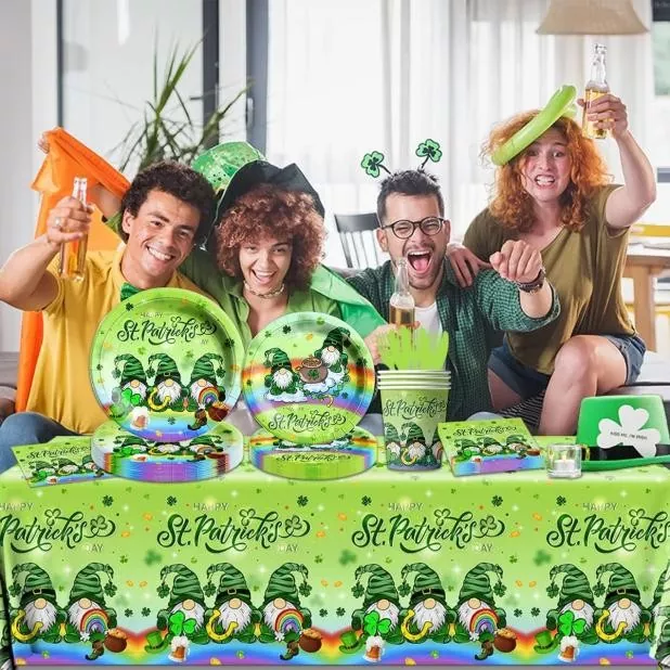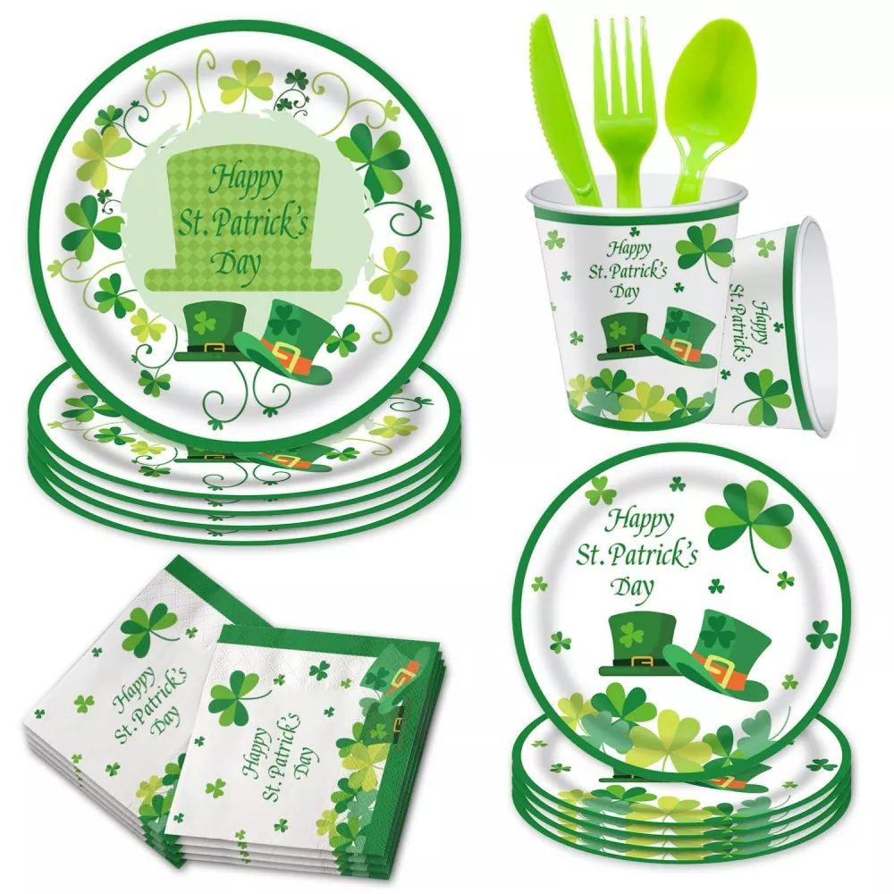 تحتوي مجموعة أدوات المائدة التي تستخدم لمرة واحدة لعيد القديس باتريك أيضًا على مجموعة واسعة من التطبيقات، وليس فقط لمناسبة واحدة محددة. التجمعات العائلية لا بد منها. عند التجمع حول الطاولة للشواء والكعك، فإن مجموعة أدوات المائدة الخضراء هذه تخلق على الفور جوًا احتفاليًا وتخلق صورًا جميلة. إنها أكثر ملاءمة للشركات. يوفر الشراء بكميات كبيرة خصومات، وليس هناك حاجة لتعيين شخص مخصص للتنظيف، مما يجعل عملية التنظيف أسرع.